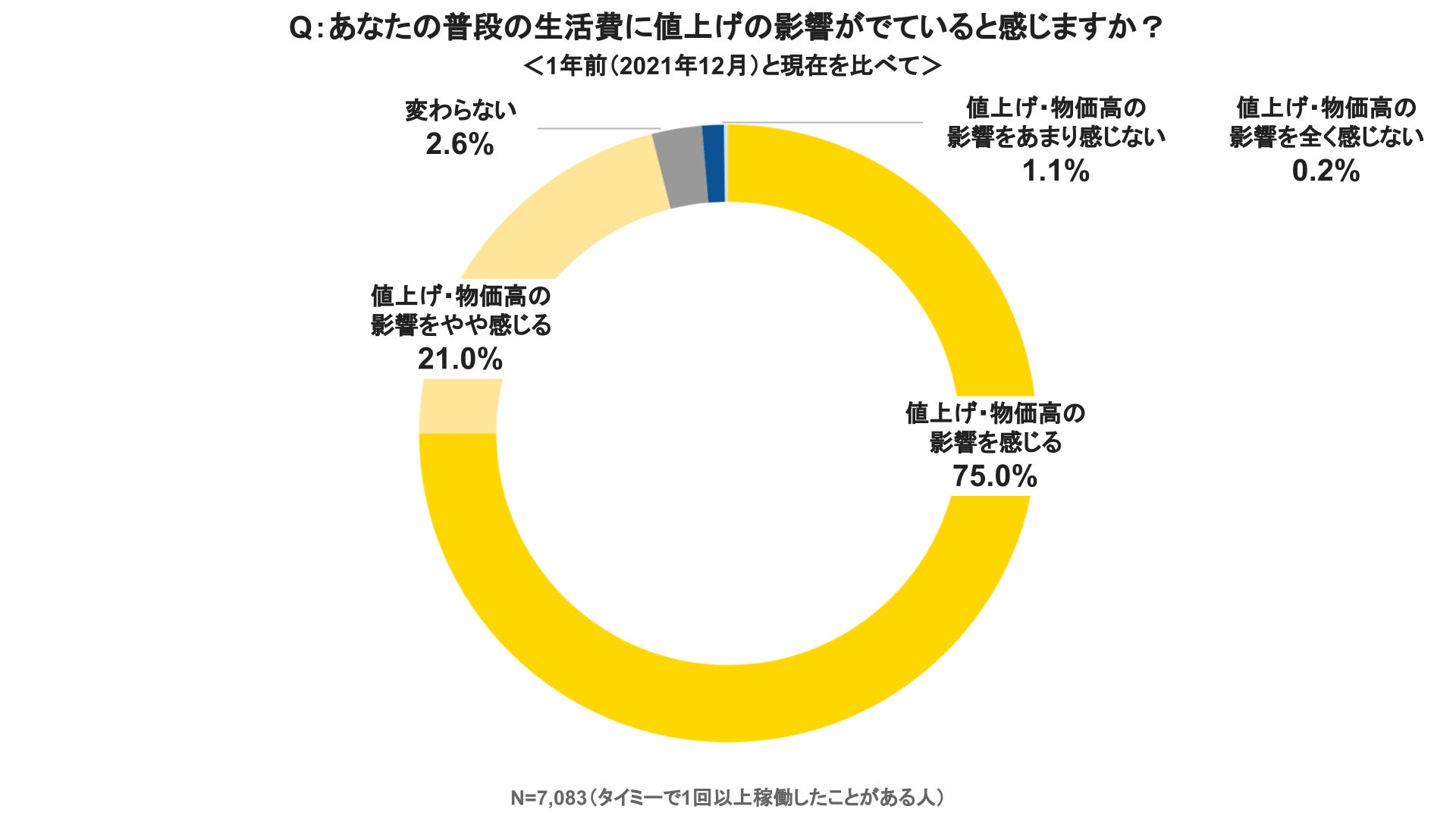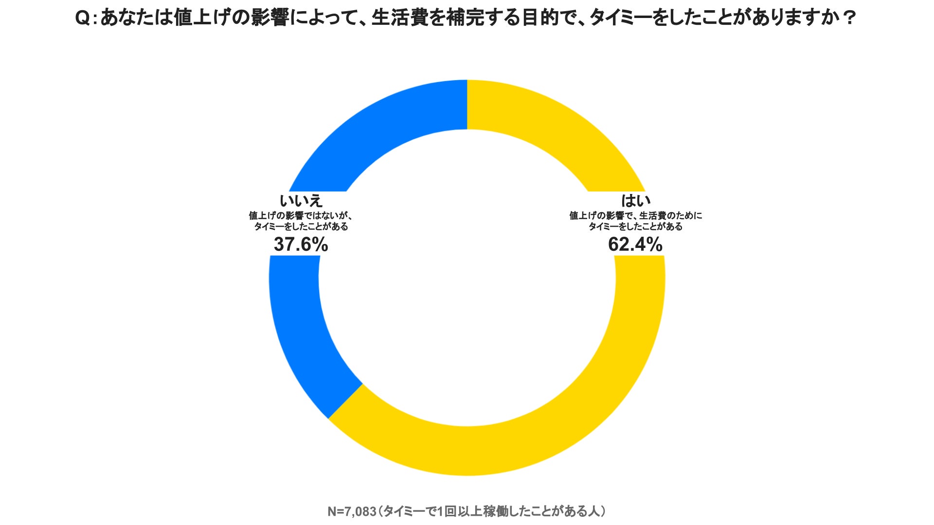 スキマバイトサービス「タイミー」を提供する株式会社タイミー(所在地:東京都豊島区、代表取締役:小川 嶺)は、「タイミー」の働き手7,083名を対象に、2022年中に世間から注目を集めている「物価高・値上げ」と「スキマバイト」に関する実態調査を実施いたしました。2022年5月、10月にも同様の調査を実施し、今回は第3弾となります。