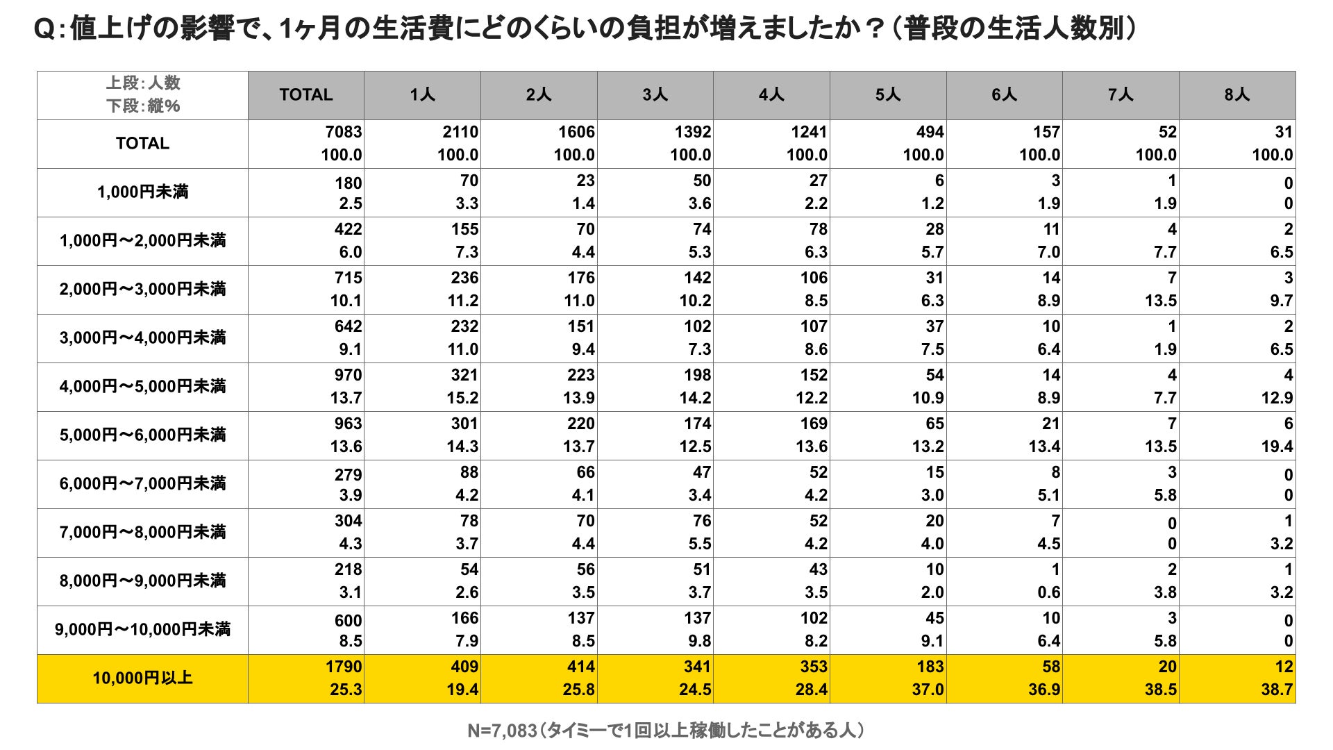 調査対象:「タイミー」の働き手 7,083名