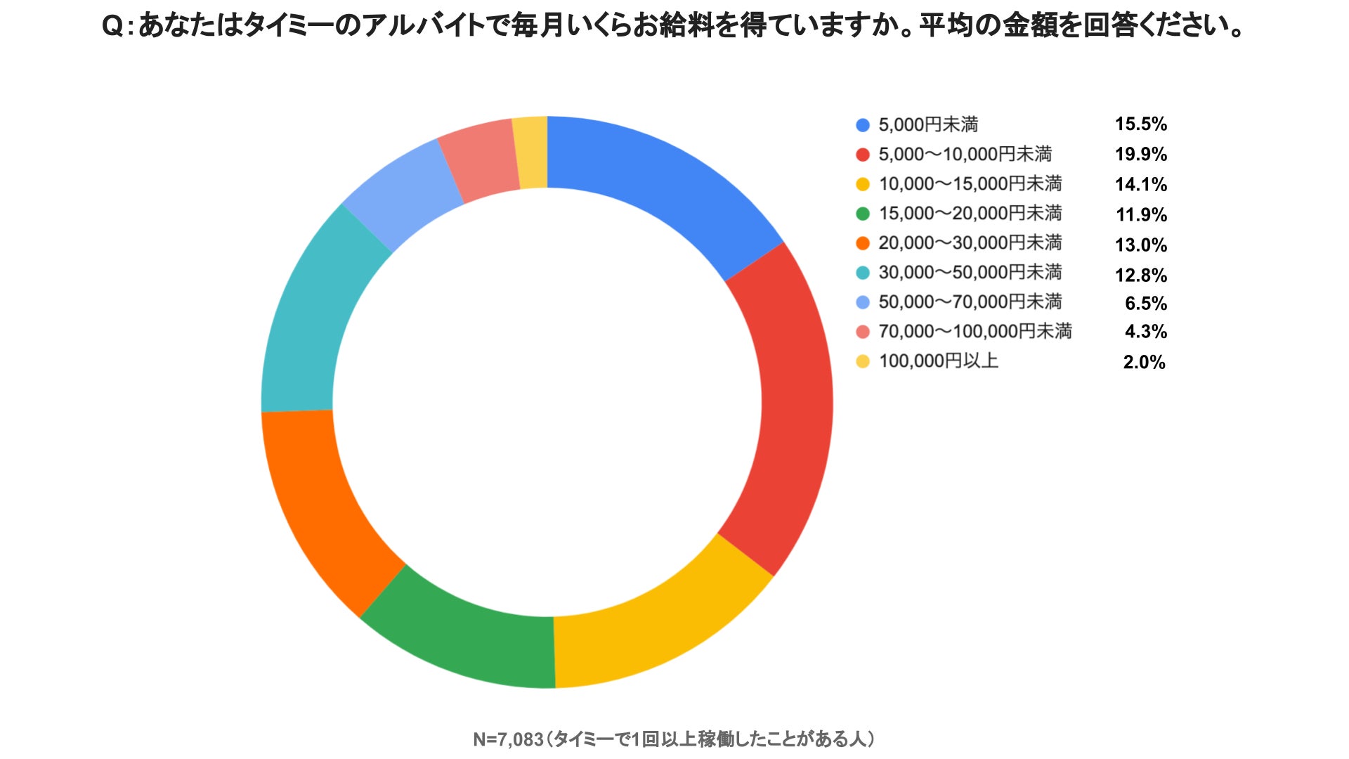 タイミーのバイトで得た毎月の収入の中央値は、1ヶ月あたり15,000〜20,000円程度。