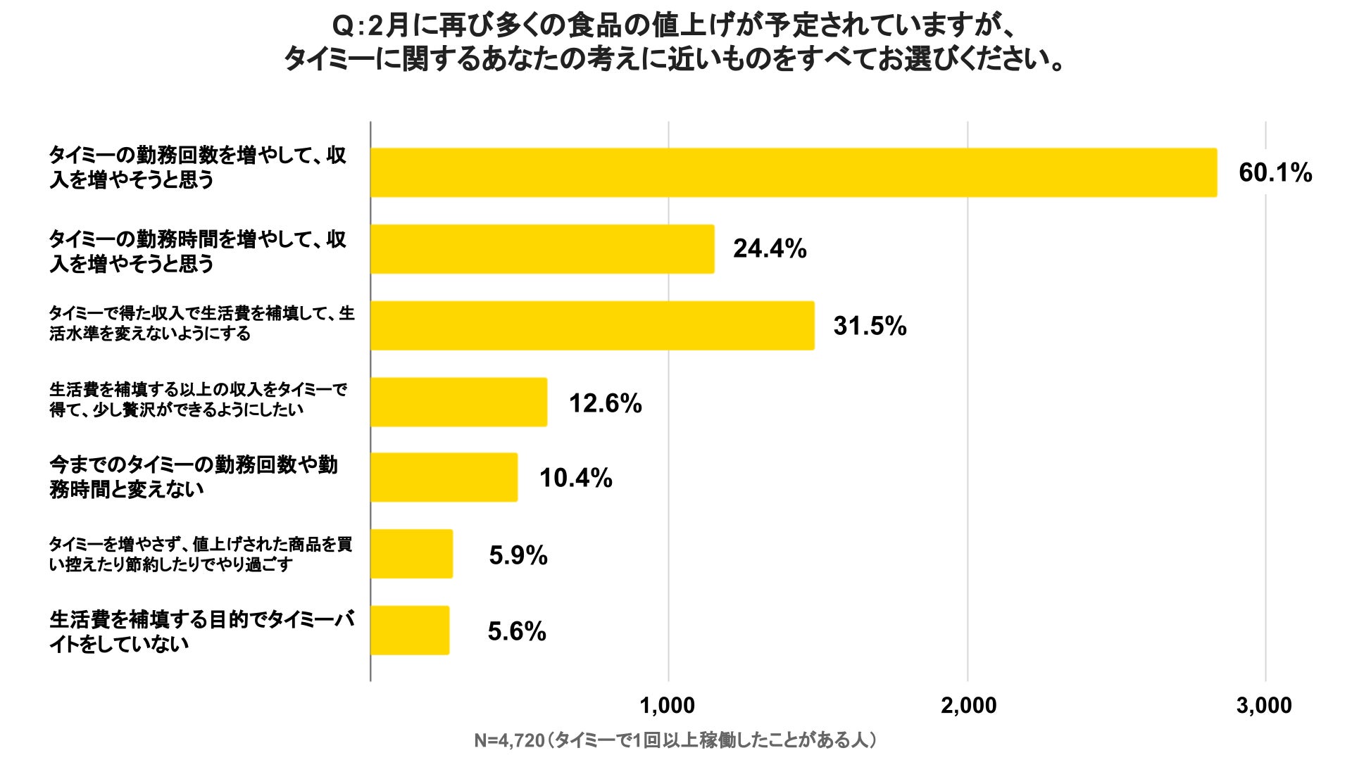 2月の食品値上げラッシュに向けスキマバイト勤務回数を増やそうと思う人が6割超え〜