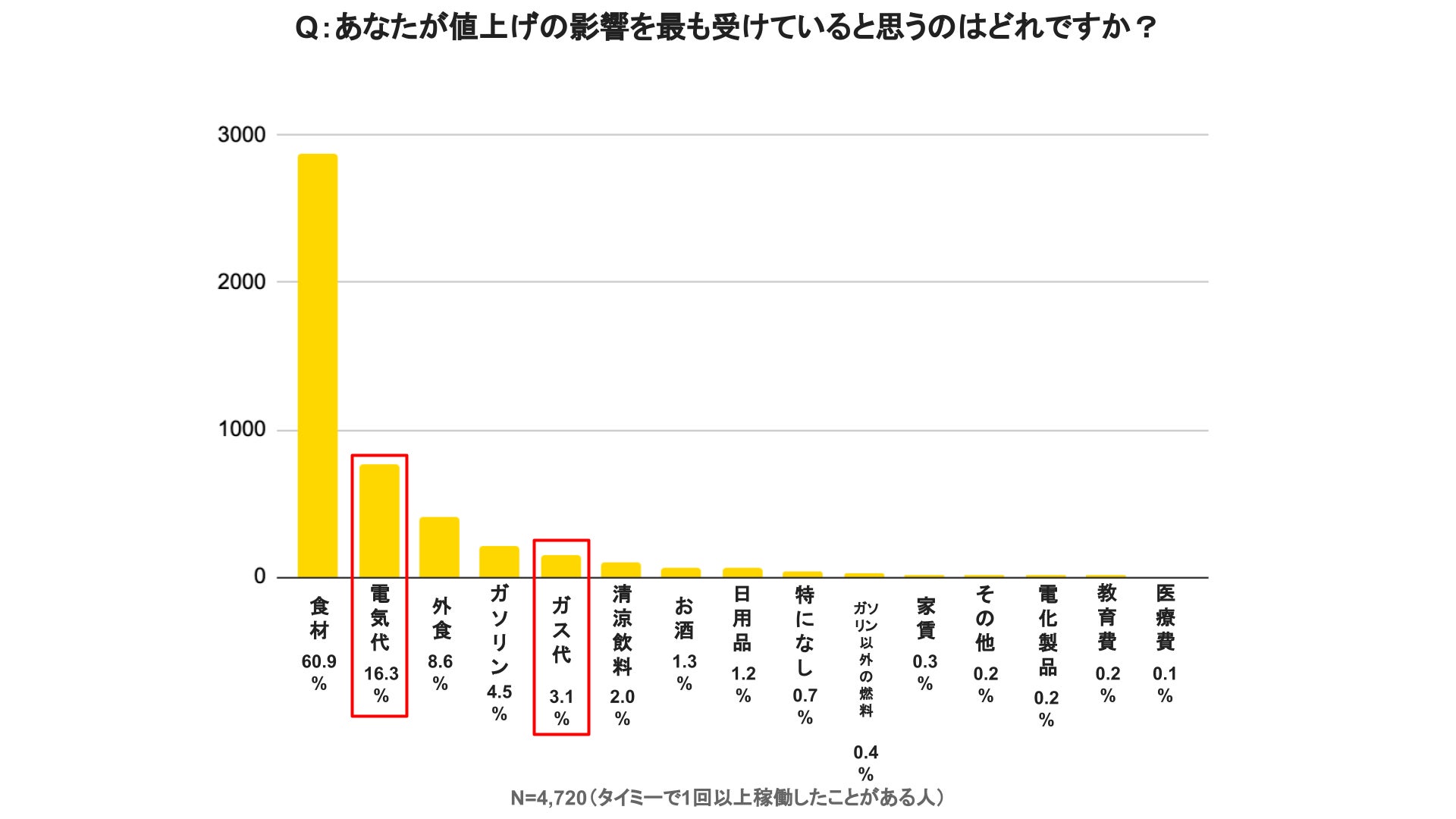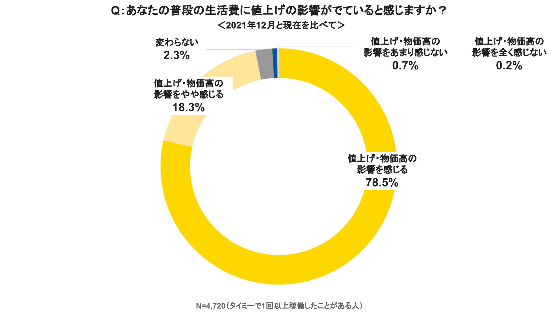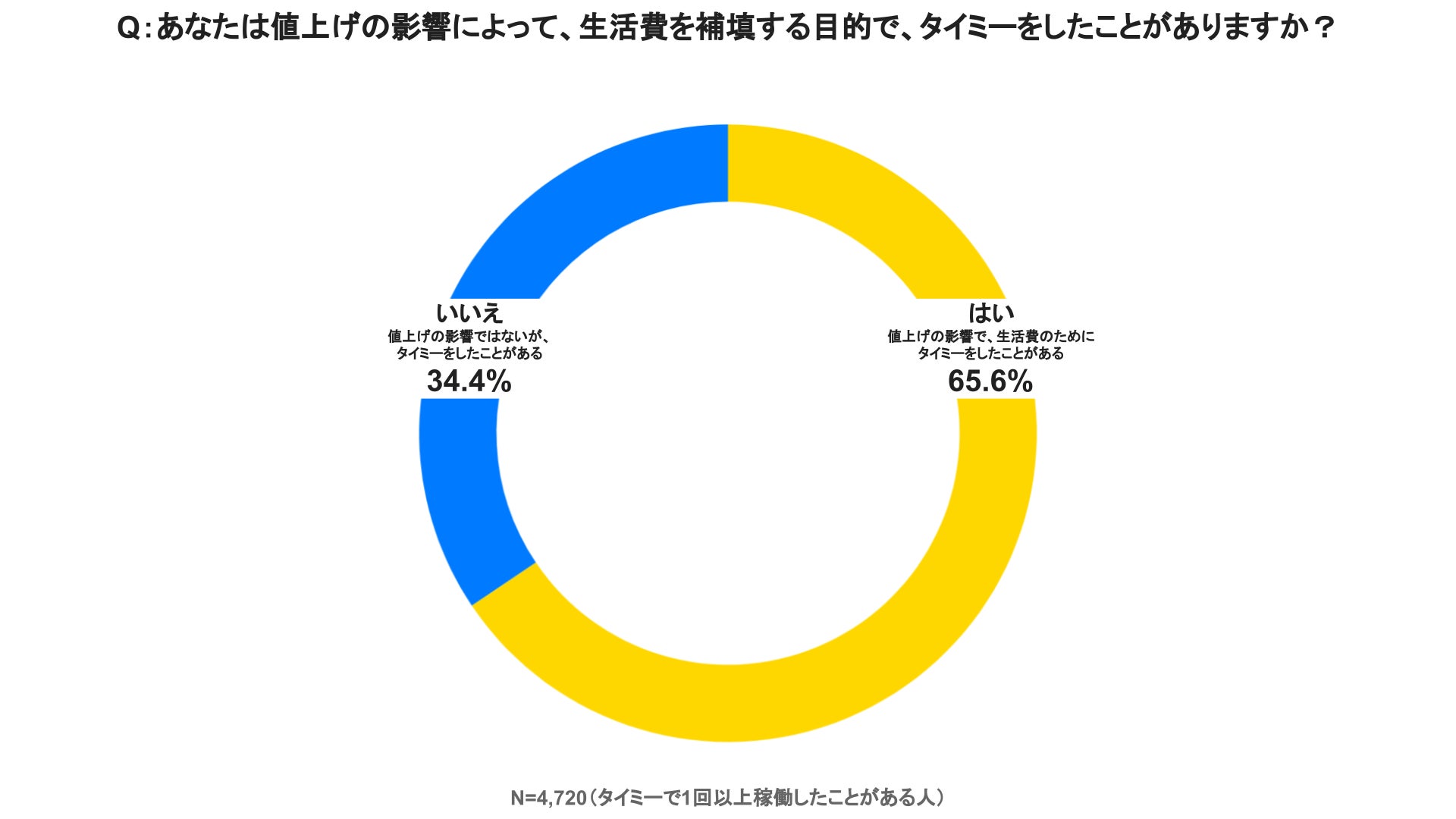 スキマバイトサービス「タイミー」を提供する株式会社タイミー(所在地:東京都豊島区、代表取締役:小川 嶺)は、「タイミー」に登録している働き手4,720名を対象に、生活者にとって大きな関心事になっている「物価高・値上げ」と「スキマバイト」に関する実態調査の第5回目の調査(過去4回の調査結果は末尾参照)を実施いたしました。