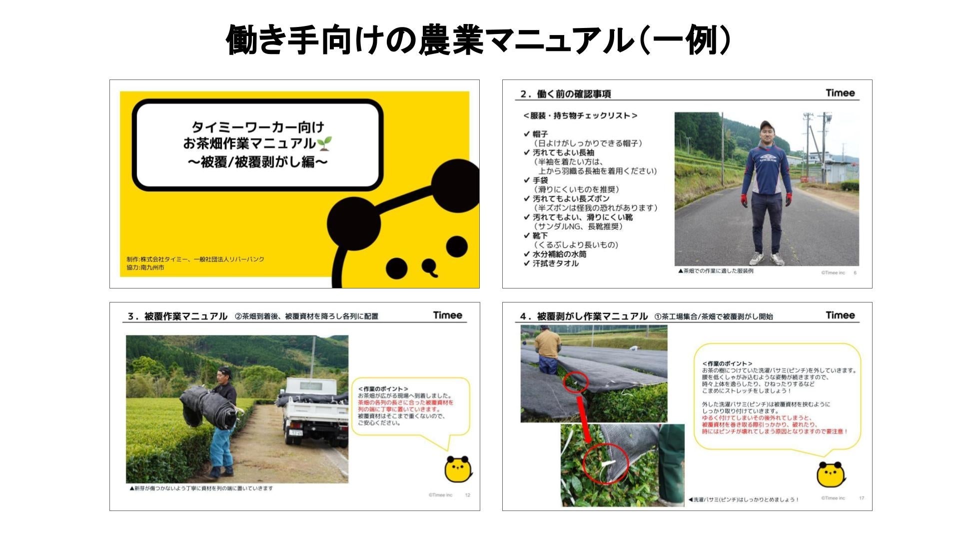 農家や事業者と共同で農作業に適した服装や当日の業務内容を文章や写真と共に細かく掲載したマニュアルを準備するなど、勤務前に働き手の不明点や不安が払拭されるような取り組みも行っています。
