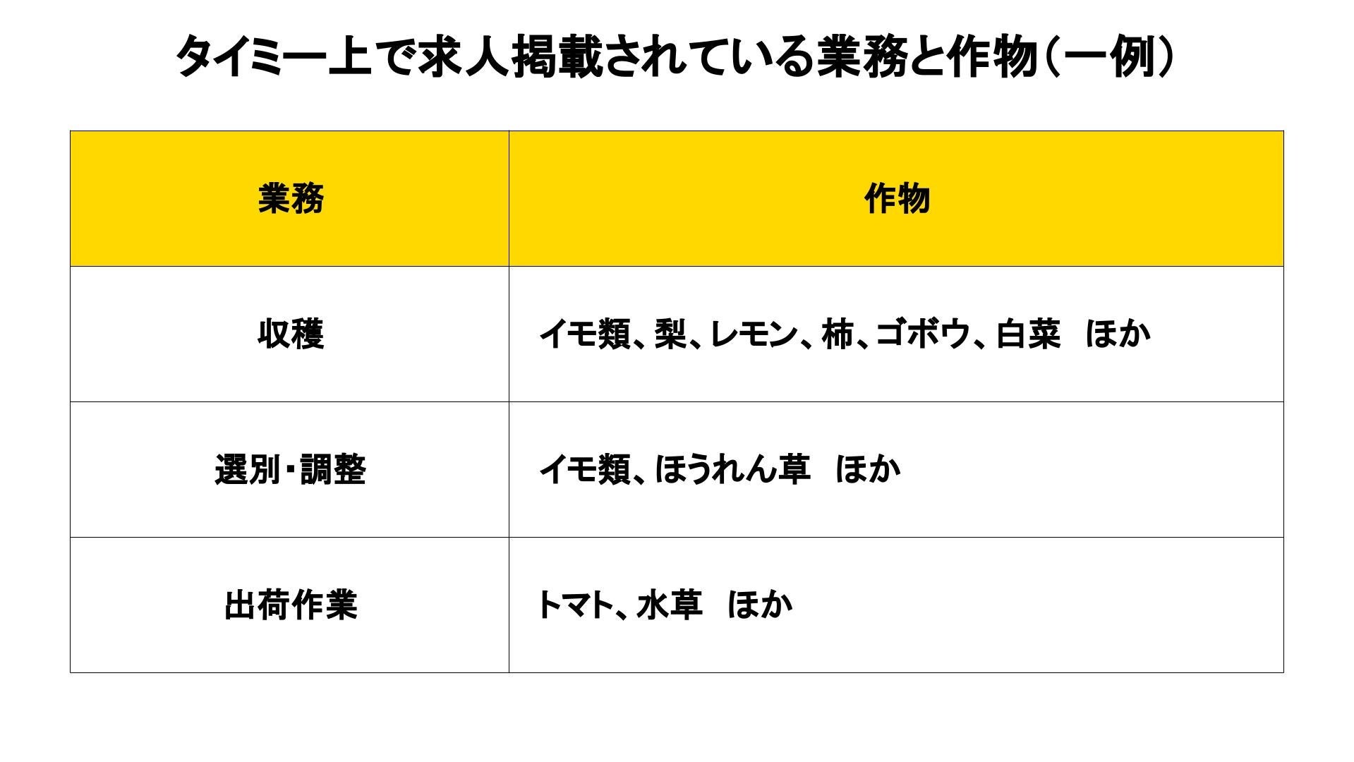 【タイミーで掲載されている農業の仕事】