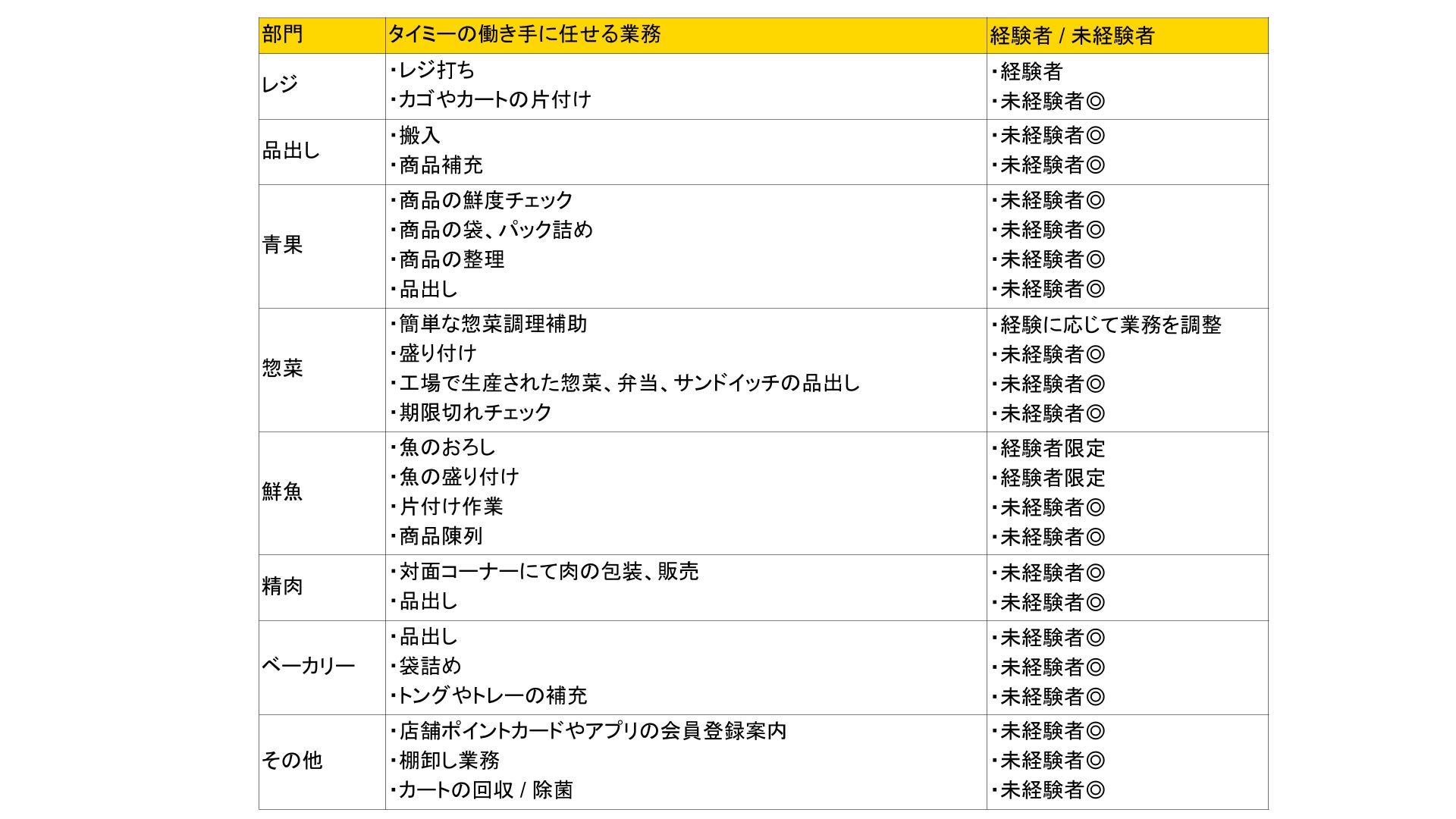業務切り分けによりスーパーでのスキマバイト活用部門 / 業務が拡大