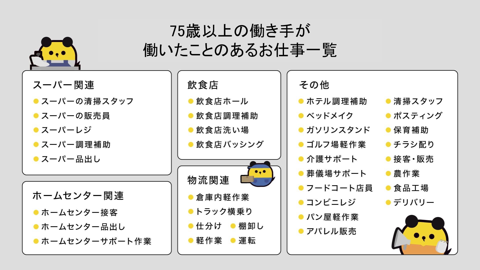 - タイミーを登録している最高齢の働き手は、91歳の方がいることがわかりました。(登録のみで勤務はしていない)