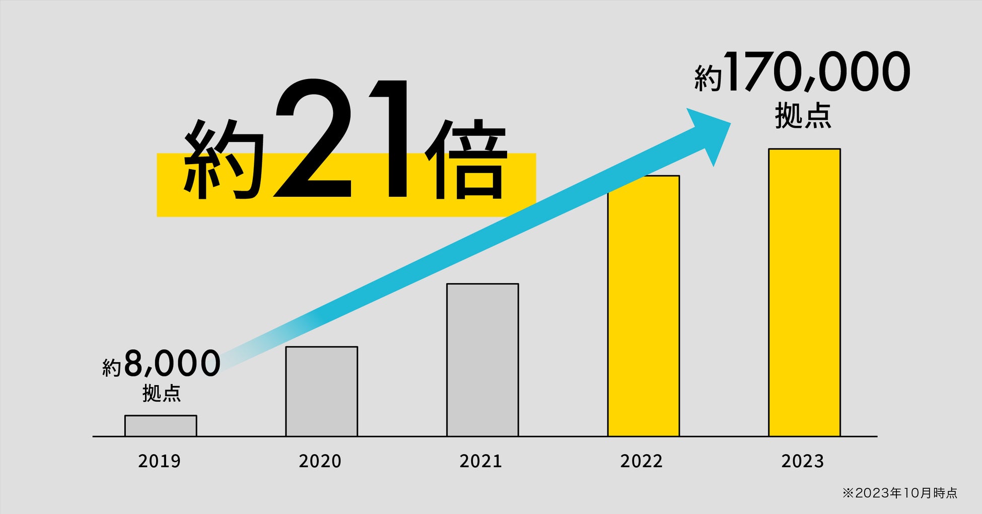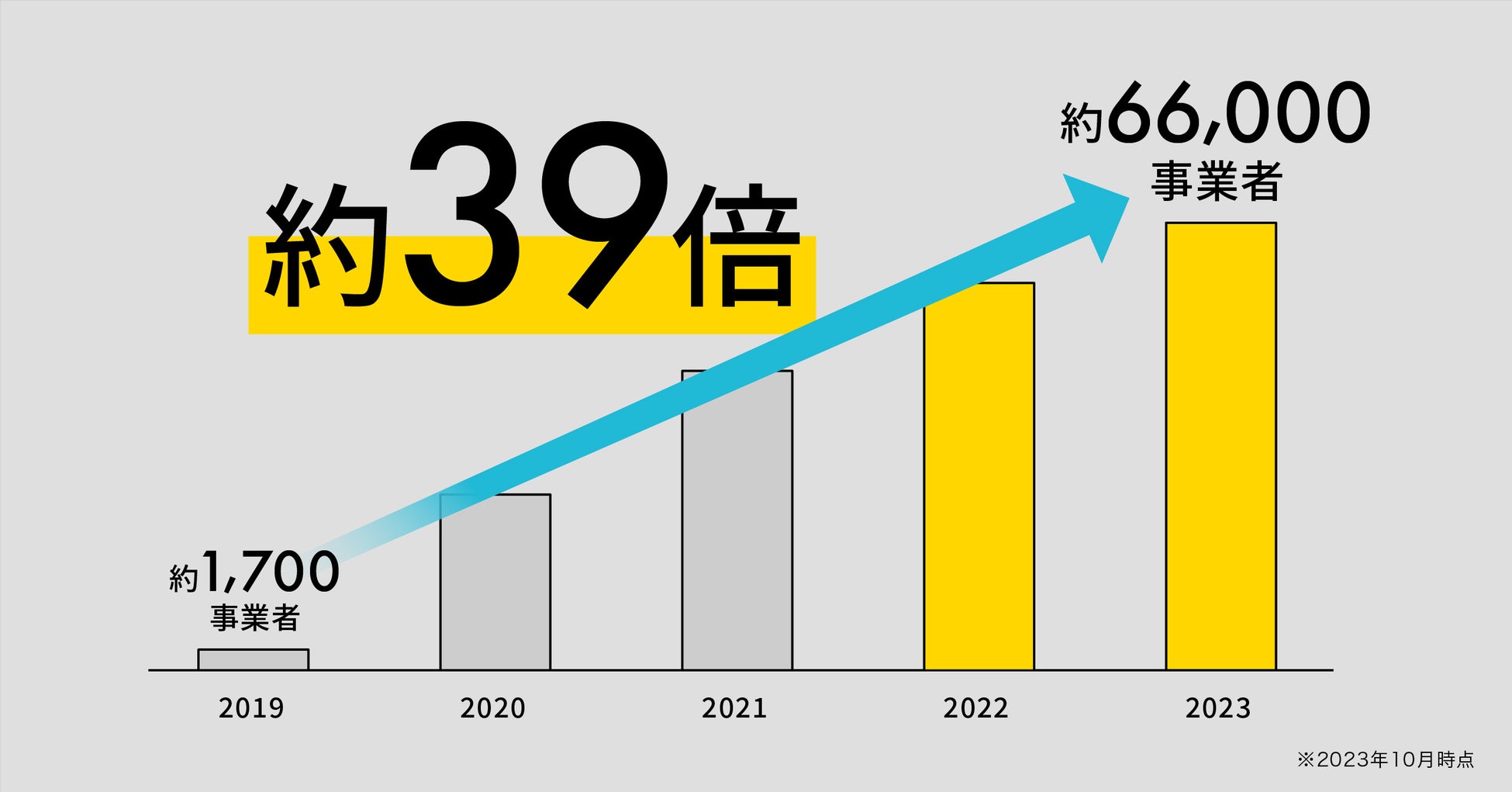 ワーカー数同様に、事業者数、事業所数も順調に増加しており、2019年比では、事業者数は約39倍、事業所数は約21倍となりました。