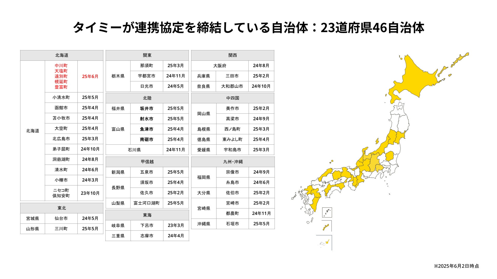 今回で23道府県46自治体との連携協定締結となります(※3)。また、5町にまたがる広域での連携協定は今回が初めてです。