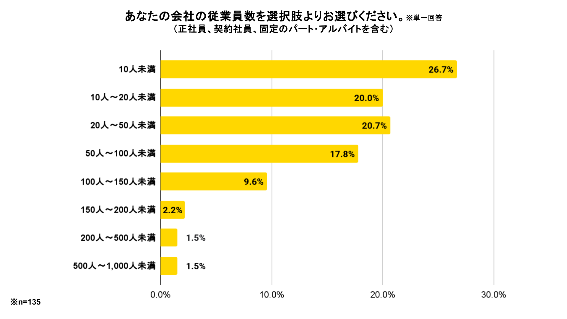 調査対象:従業員数が1,000人未満の「タイミー」を活用する事業者135社