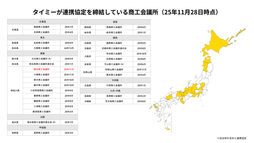 当社はこれまで28の商工会議所と連携協定を締結しており、今回の横浜商工会議所との連携は29事例目となります。
