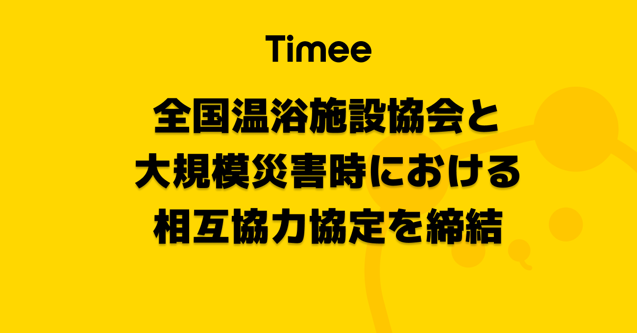スキマバイトサービス「タイミー」を提供する株式会社タイミー(所在地:東京都港区、代表取締役:小川 嶺)は、全国温浴施設協会(所在地:東京都港区、会長:山崎 寿樹、以下「協会」)と2026年1月16日に「大規模災害時における相互協力協定」を締結しました。