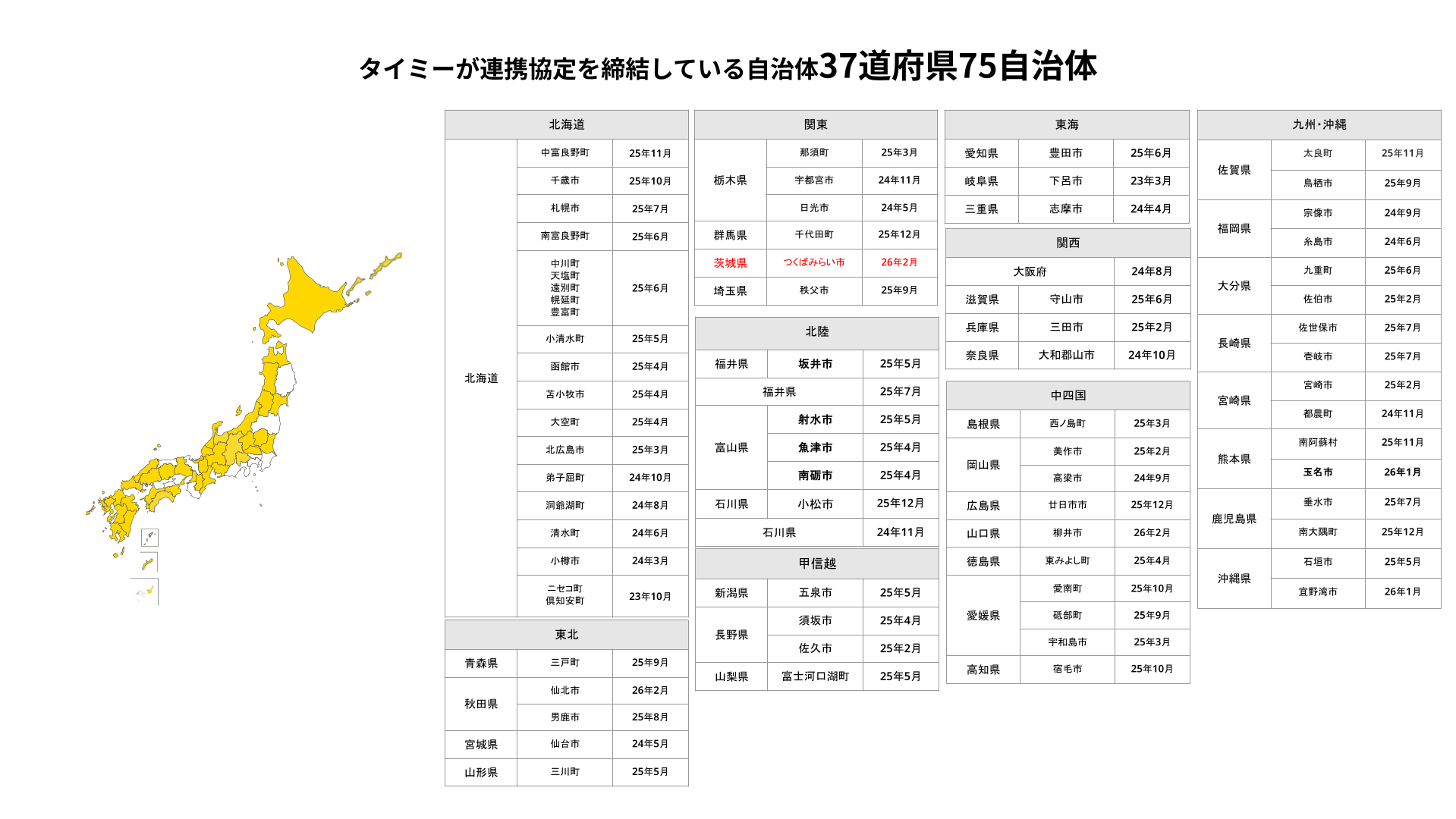 当社はこれまで36道府県・74自治体と連携協定を締結しており、今回のつくばみらい市との連携は37道府県・75自治体目となります(※1)。