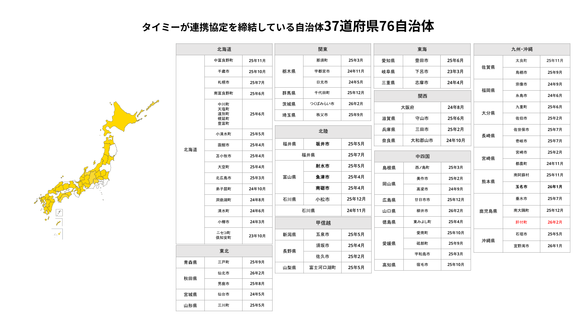 当社はこれまで37道府県・75自治体と連携協定を締結しており、今回の肝付町との連携は37道府県・76自治体目となります(※2)。