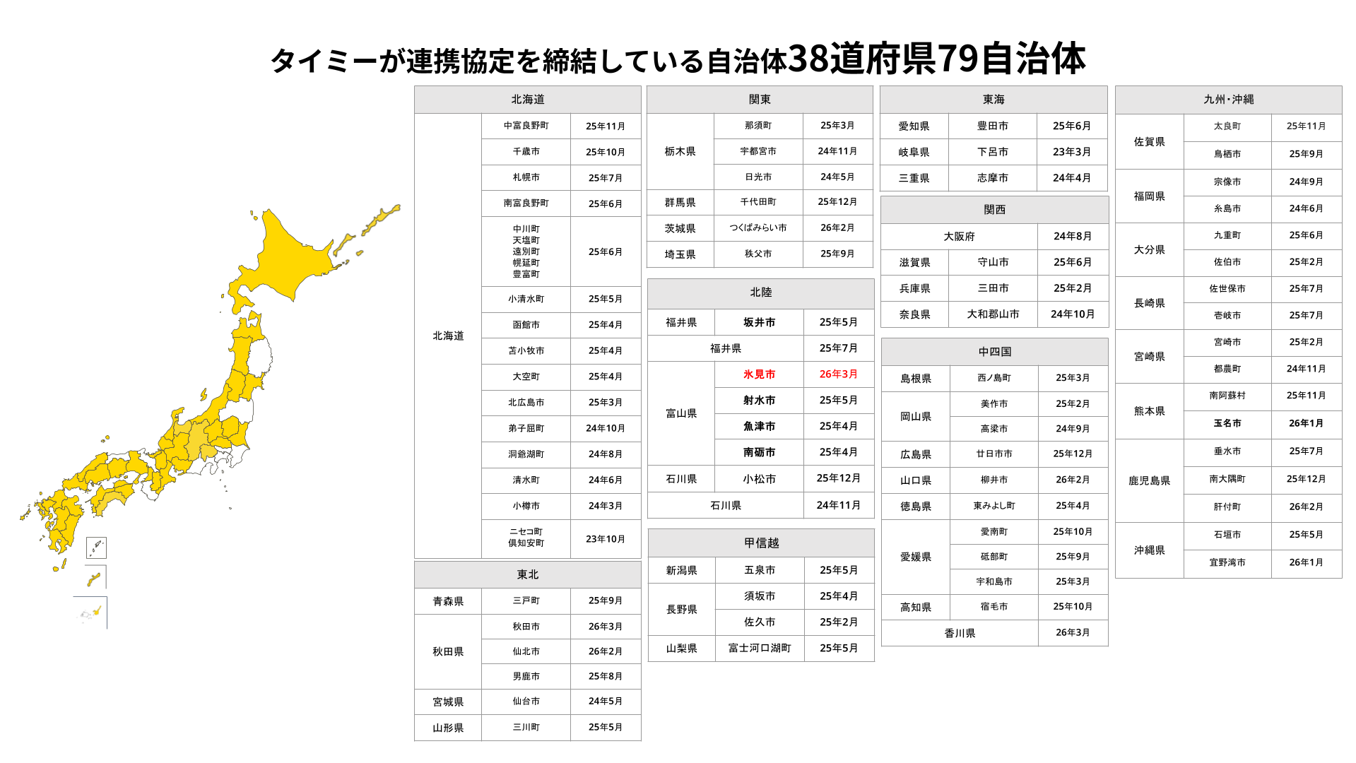 当社はこれまで38道府県・78自治体と連携協定を締結しており、今回の氷見市との連携は38道府県・79自治体目となります(※)。