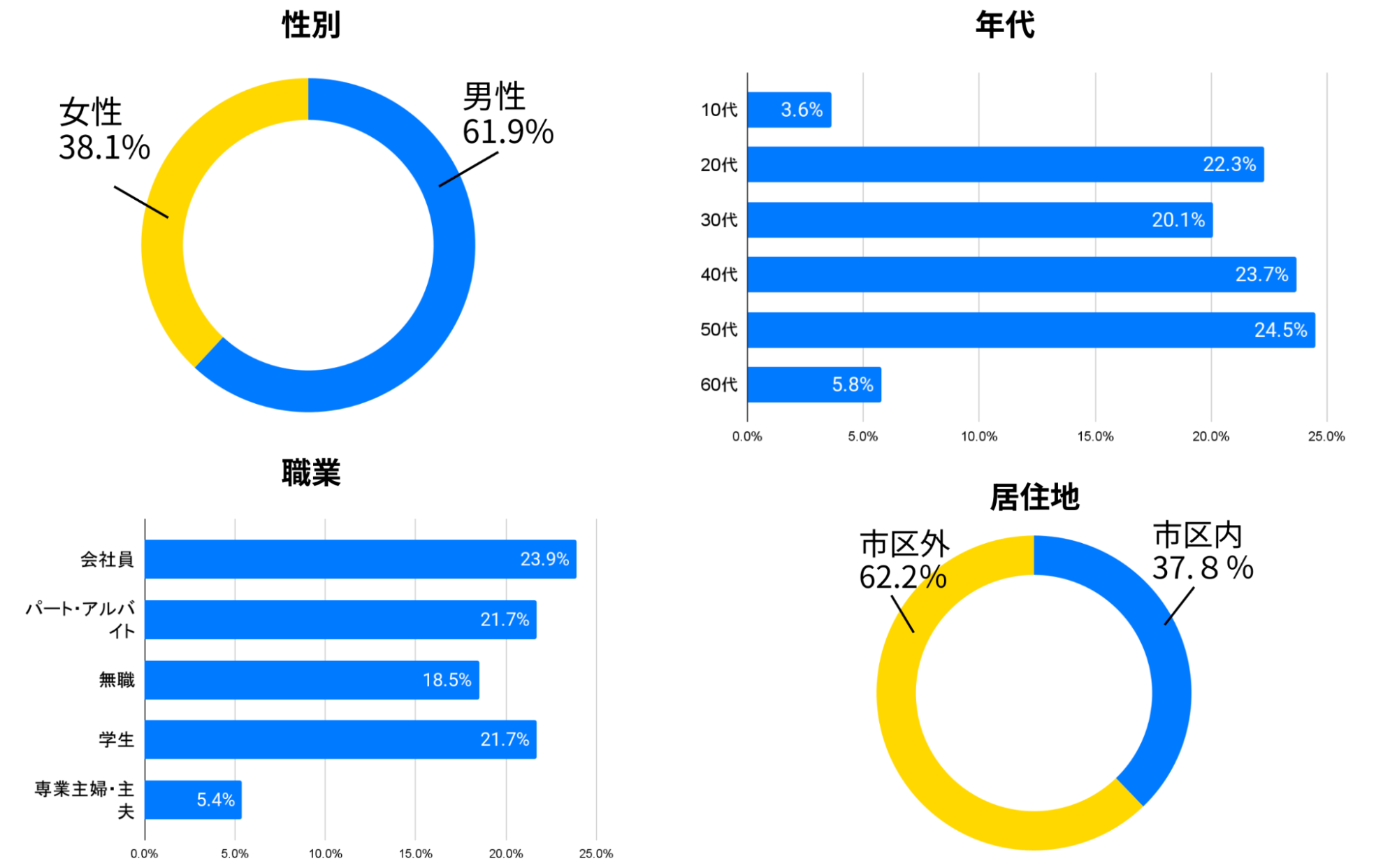※n数は、性別・年代は139(実証期間中に実証参加事業者8社で稼働したワーカーの実人数。リピーターとして働くワーカーが一定数いることから、稼働人数473人とは異なる)、職業は92(タイミー登録属性に基づき集計しており、未登録者が一部存在)、居住地は473(稼働ベース)である。